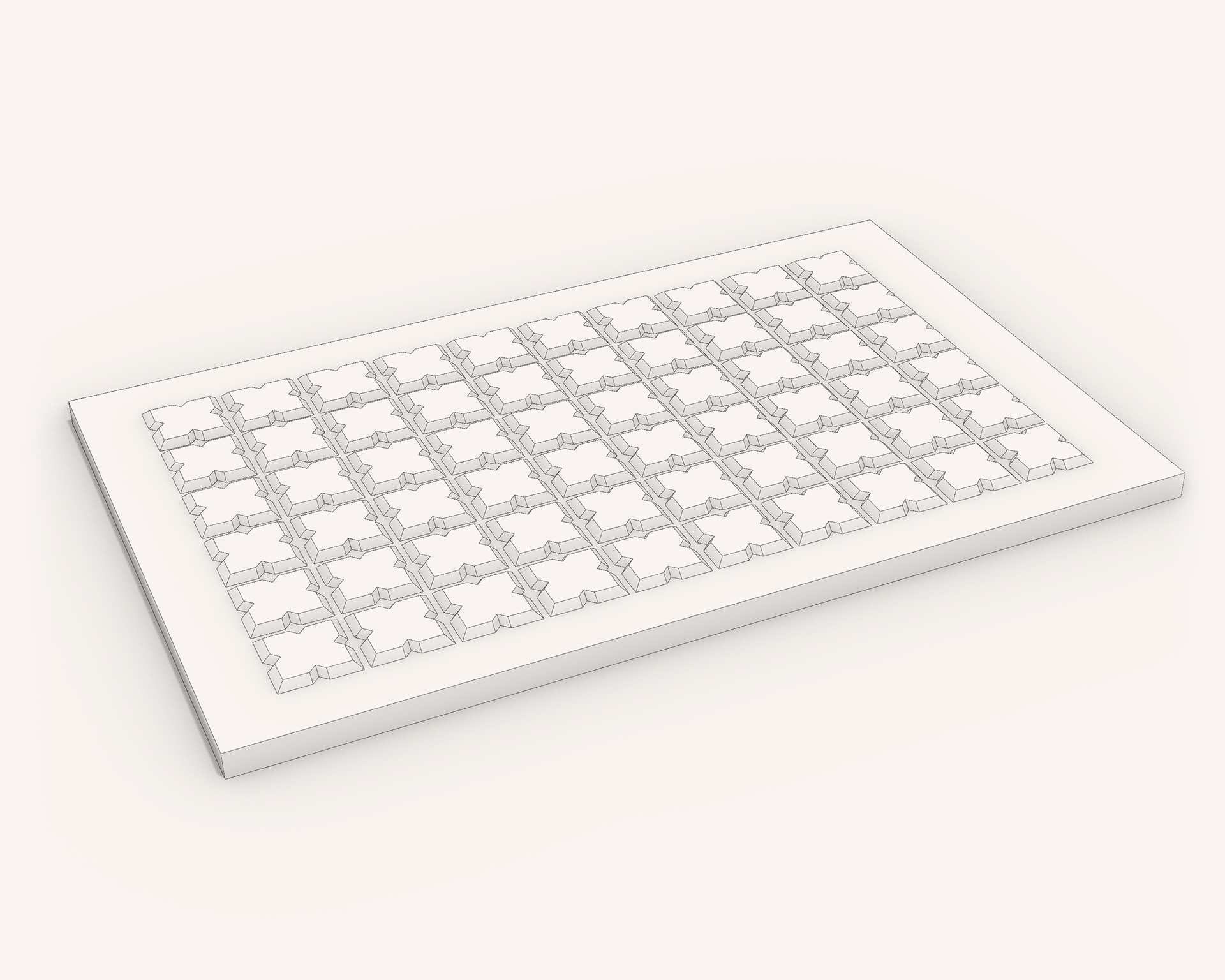 A parametric tile with a simple geometric shape that brings texture and interest to flat surfaces.